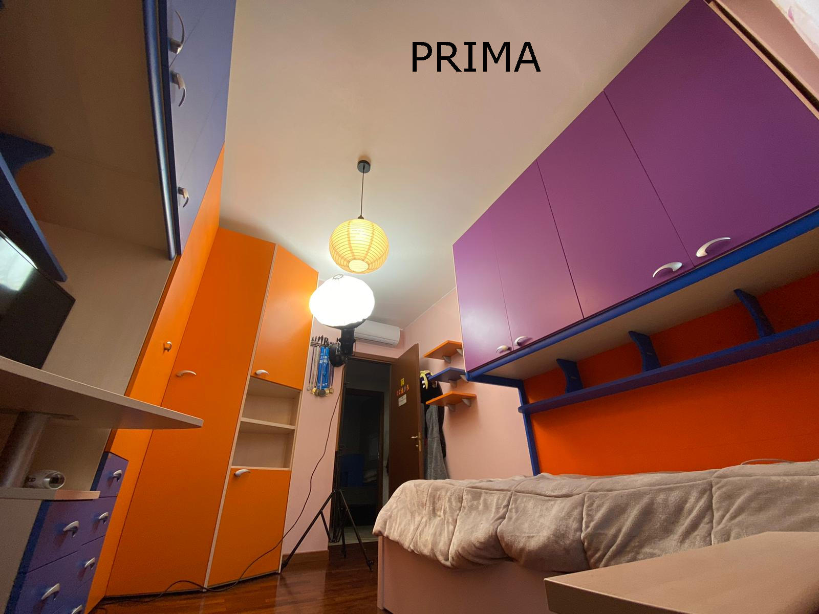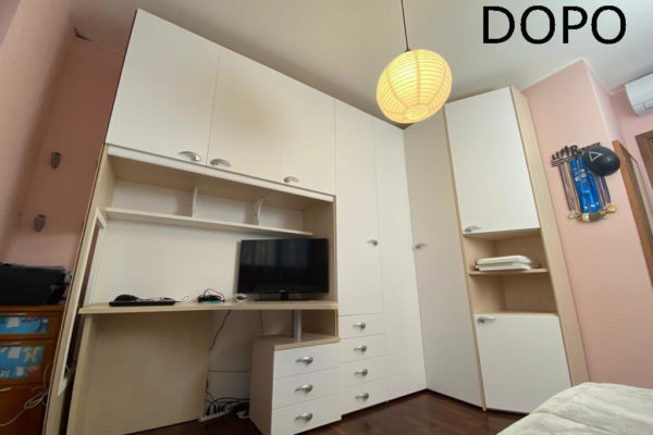 Tonalità impegnative per questa cameretta. Un bellissimo bianco rilassa e rende attuale l’intero arredo